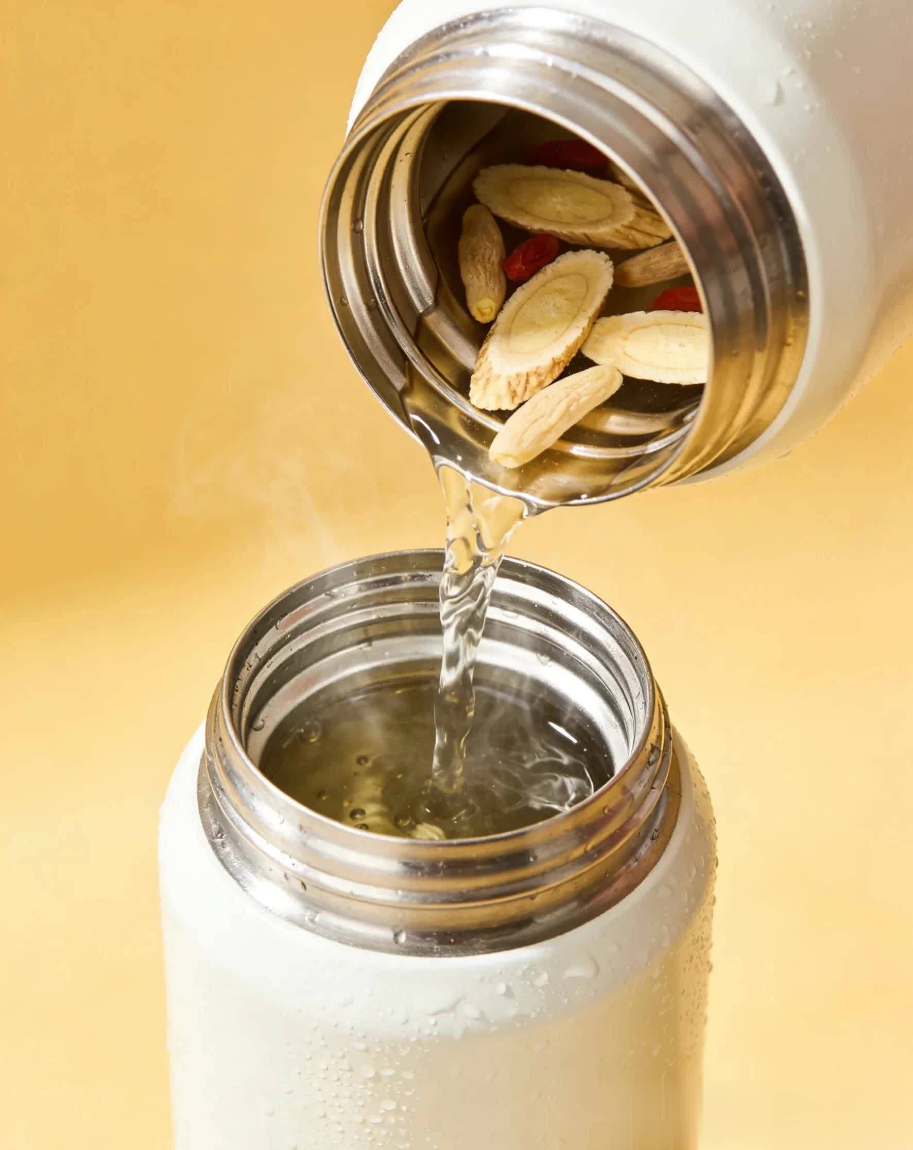 2. 放入保温杯/养生壶,沸水冲入
